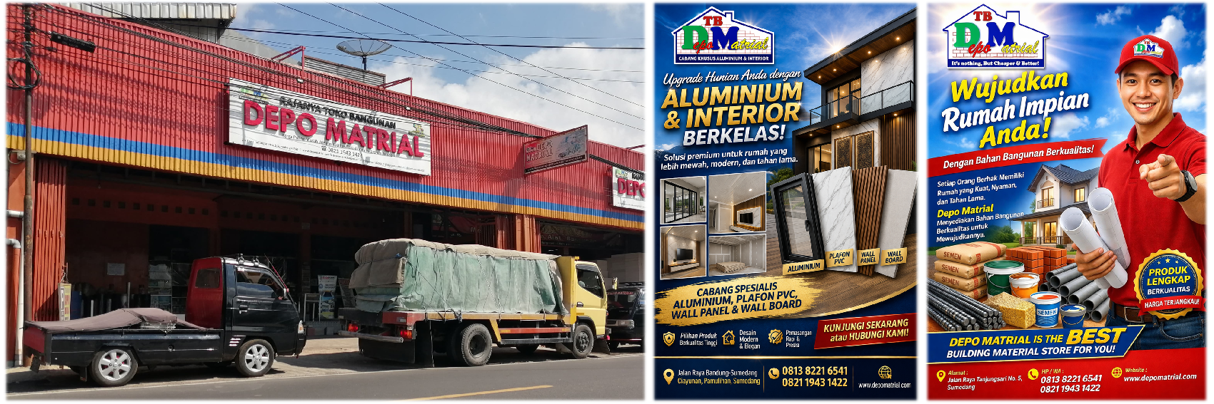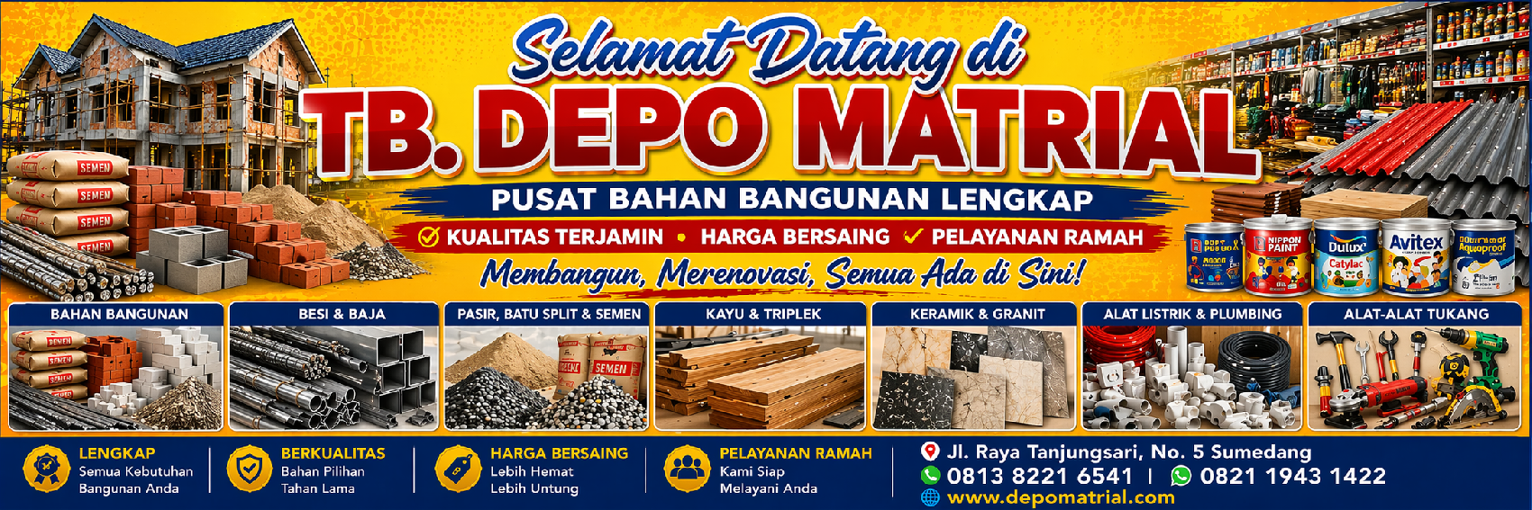 Seiring dengan meningkatnya kebutuhan masyarakat akan bahan bangunan akibat pesatnya perkembangan pembangunan perumahan di berbagai wilayah, kehadiran Depo Matrial Tanjungsari di tengah masyarakat diharapkan dapat menjadi salah satu alternatif pilihan toko bangunan yang terbaik dan terpercaya. Depo Matrial Tanjungsari senantiasa berkomitmen untuk memberikan pelayanan yang optimal, memahami kebutuhan pelanggan, serta terus berupaya meningkatkan kualitas layanan demi kepuasan seluruh customer dan sahabat Depo Matrial.